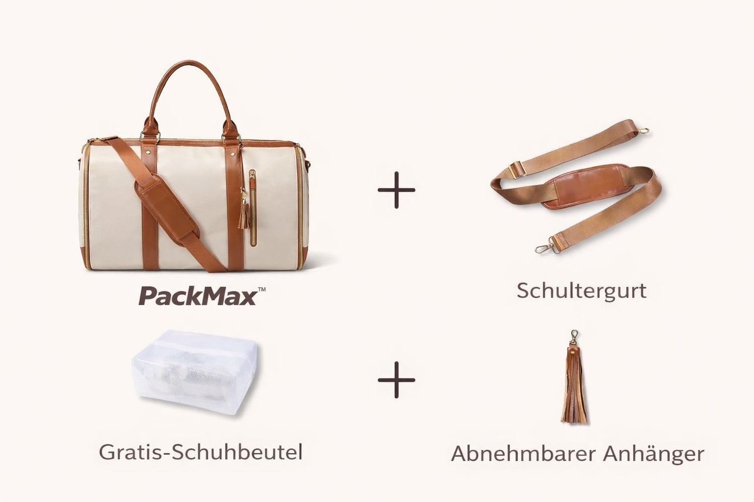 Ja, zusätzlich zu Kleidung bietet die Tasche Platz für Schuhe, Accessoires, Kosmetik und weitere wichtige Essentials. Sie ist damit ideal für eine organisierte und stilvolle Reise geeignet.